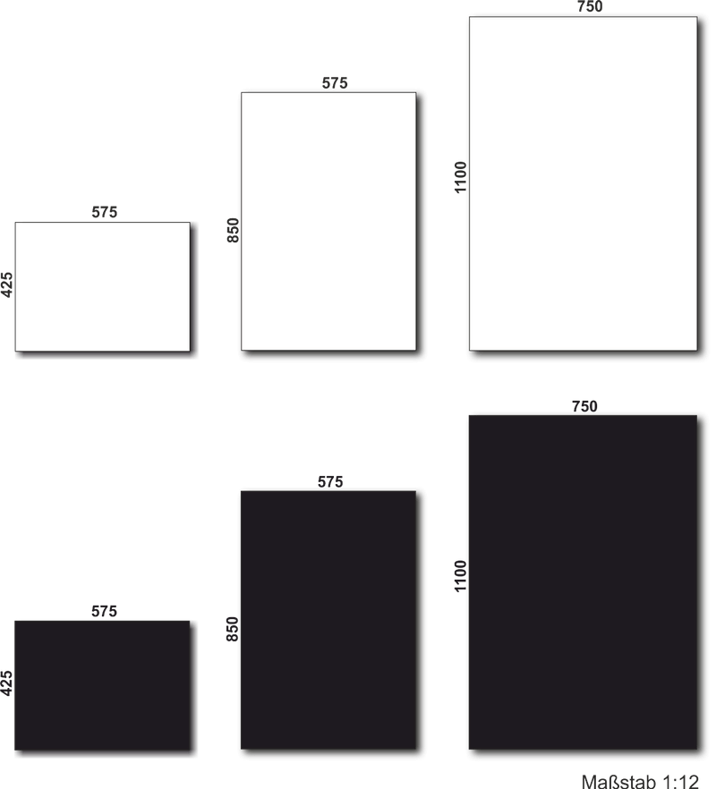 • Größen: 575x425mm, 575x850mm und 750x1100mm